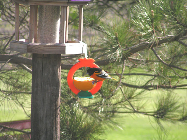 Beautiful pictures! I was at my in laws tonight, they had an oriole on their hummingbird feeder, plus a hummingbird! They are so cute. I need to get my hummingbird feeder out; I didn't realize they came this early!